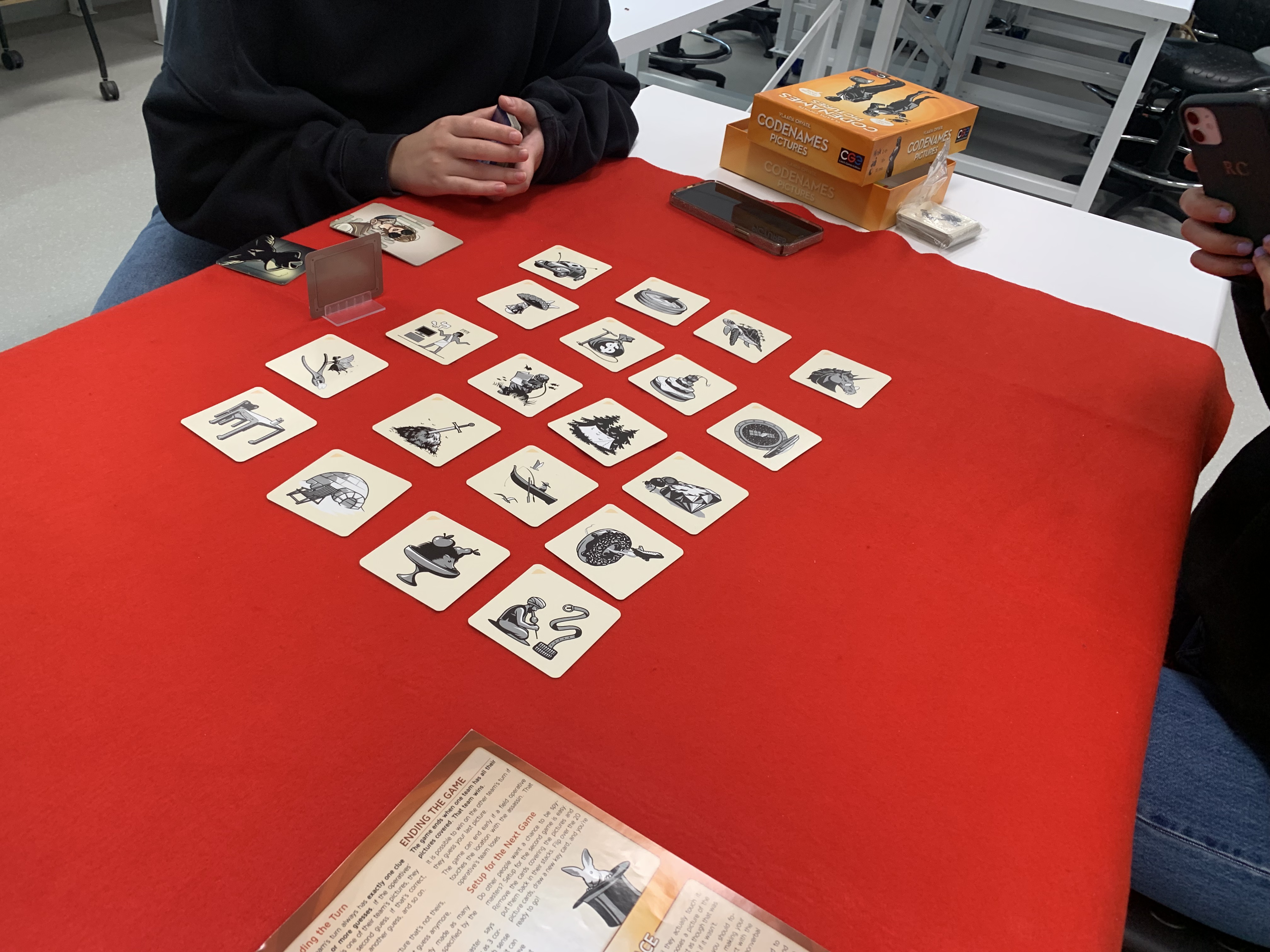 Essentially the way to play this game is that once you are split into two even teams one person from each team will be the spy and have to attempt to give 1 One word hint with a number at the end of that hint for just that one turn to assist in the rest of the team picking the right cards, whichever team successfully picks all of their correct cards first wins BUT be sure your communication is on point otherwise you might give away enemy team cards or worse…